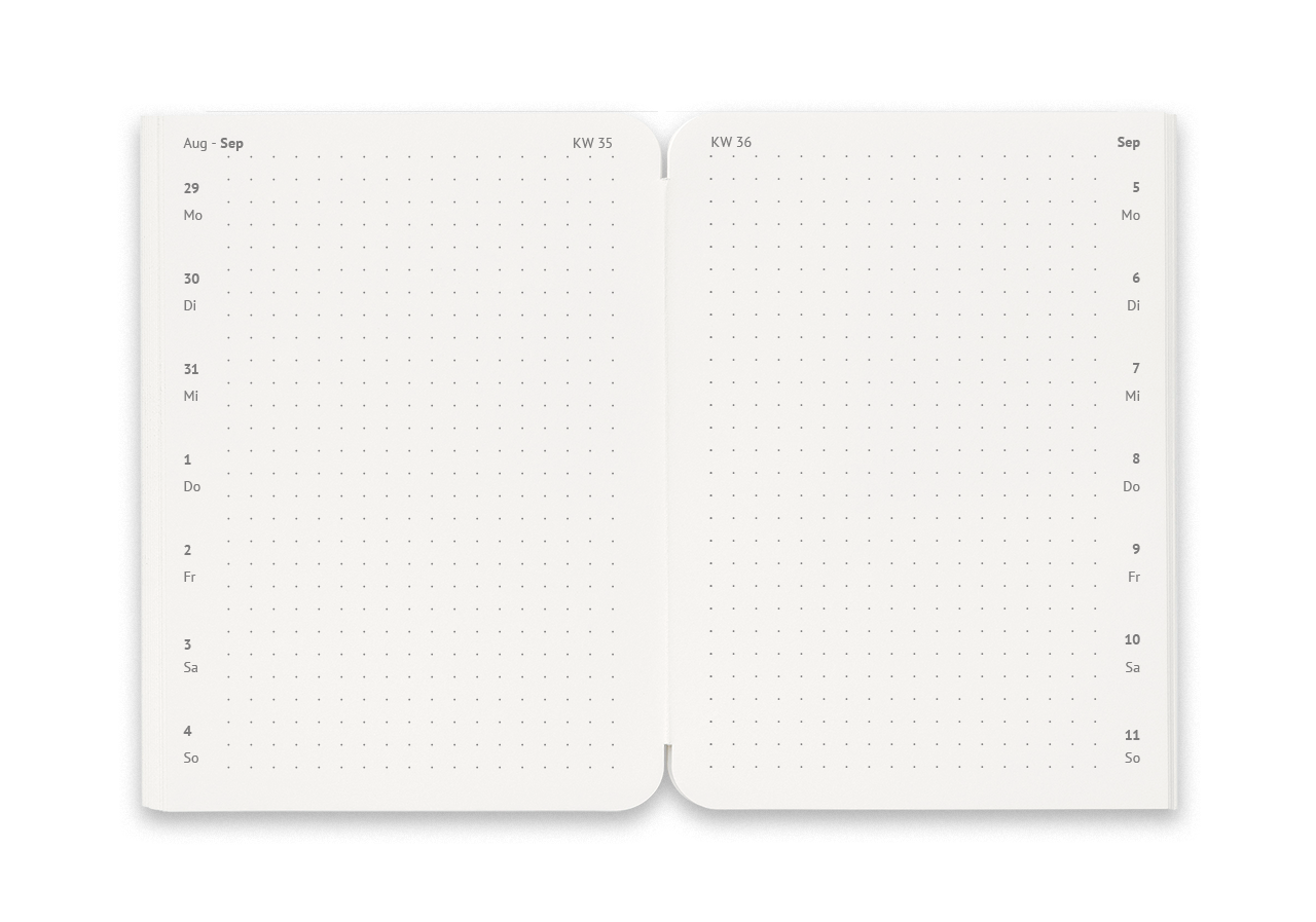 ohne Trennung mit viel Platz für Termine, Notizen und Skizzen. Im