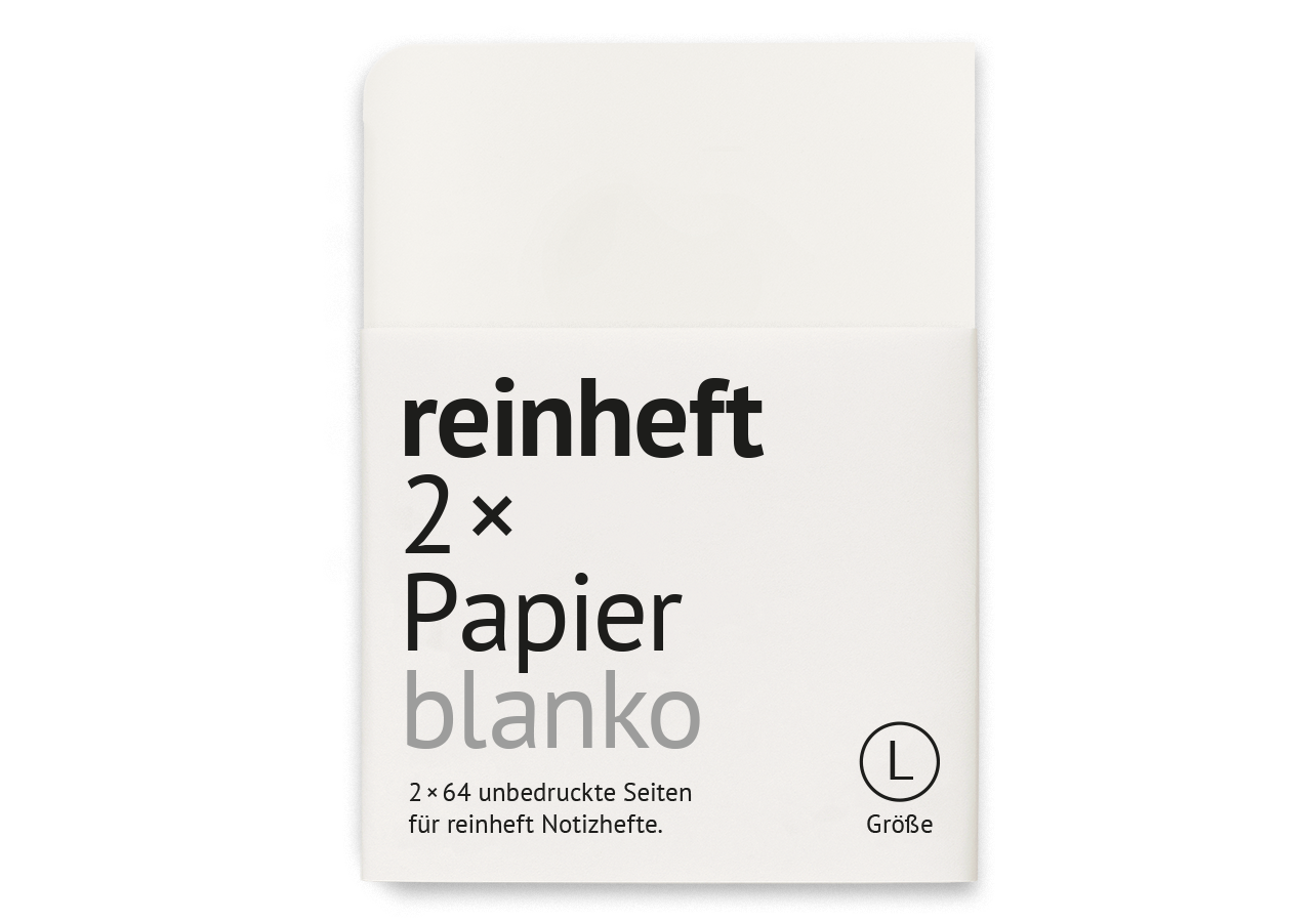 Bei dieser Nachfülleinlage handelt es sich um blanko Papier passend für deinen reinheft Umschlag in der Größe L.