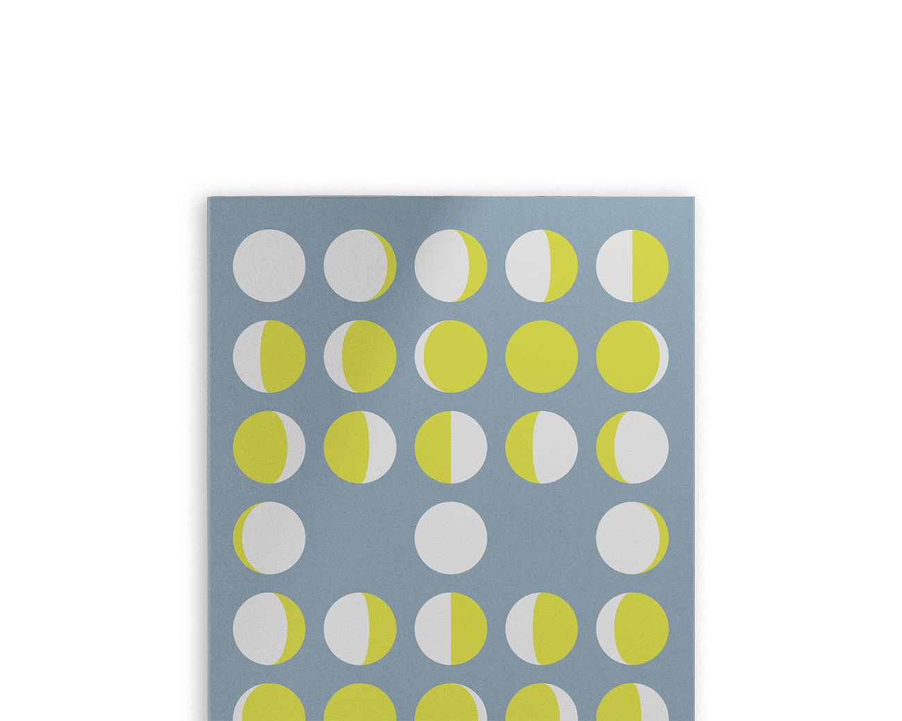 Auf blauen und schwarzen Umschlägen sind Mondphasen als rhythmische, geometrische Muster ausgelegt.